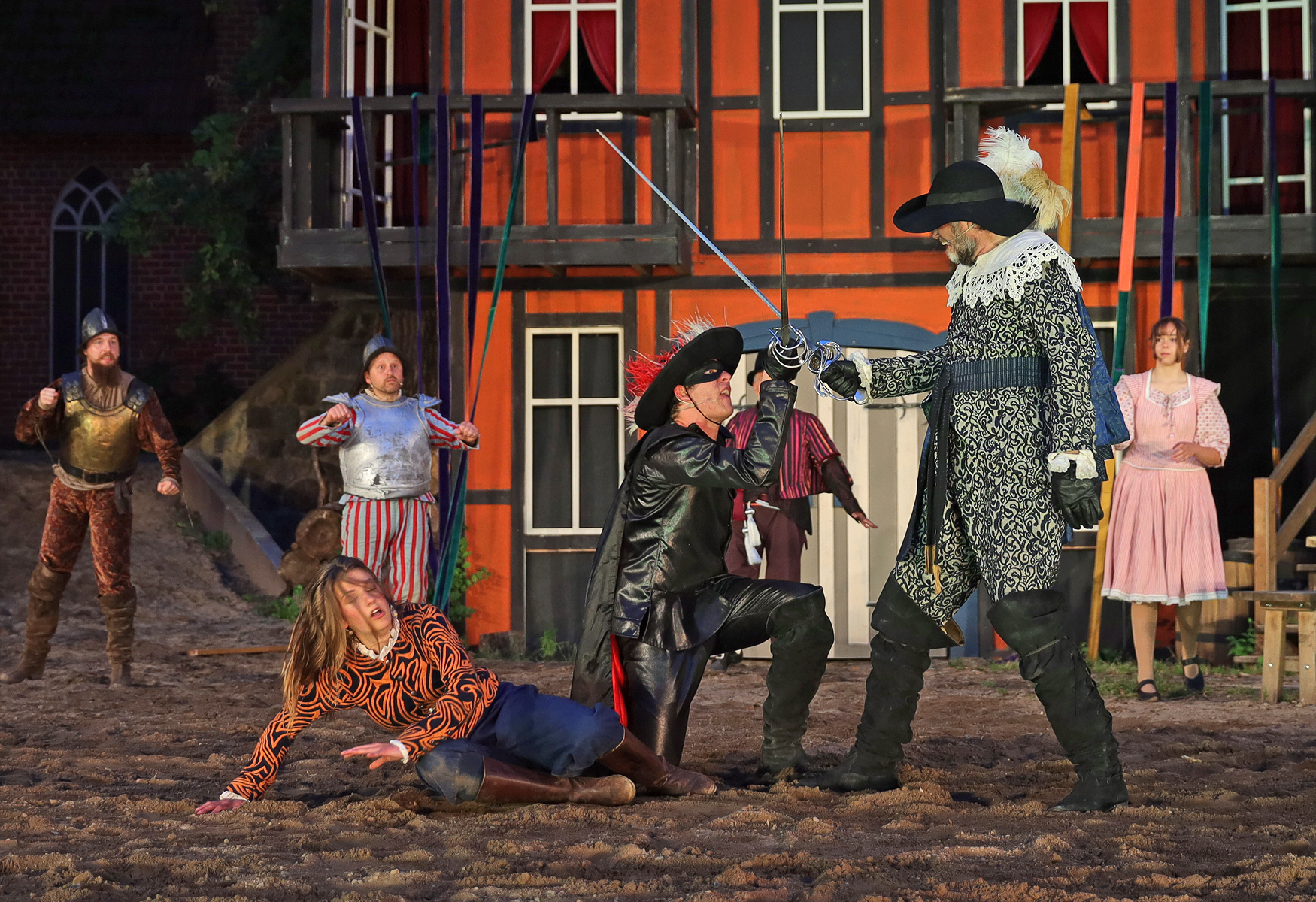 Hier finden Sie Pressefotos aktueller und vergangener Müritz-Saga Inszenierungen. Diese dürfen zu Werbezwecken oder zur Berichterstattung in Online- und Printmedien verwendet werden. Voraussetzung dafür ist die Quellenangabe, also die Nennung der jeweiligen Fotografinnen oder Fotografen und des Lizenzgebers. Eine gewerbliche Weitergabe an Dritte, egal in welcher Form, ist nicht gestattet. Die Nutzung der Fotos zu journalistischen Zwecken ist kostenfrei. Wir bitten Sie jedoch um die Zusendung eines Belegexemplars. Bei der Verwendung von Fotos in elektronischen Medien, bitten wir um eine kurze Benachrichtigung per E-Mail: info@mueritz-saga.de.